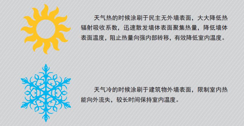 建築用反射隔熱塗料是指以合成樹脂爲基料,與功能性顔填料及助劑等配料而成,施塗於(yú)建築物表面, 具有較高太陽光反射比(反射的和入射的太陽輻射能通量之比值)和較高半球發(fā)射率(實際物體發(fā)射到半期空進的輻射通理與入射在物體表面上的輻射通量之比)塗料。